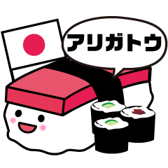 各国にちなんだ食べ物と「アリガトウ」の言葉のスタンプです。